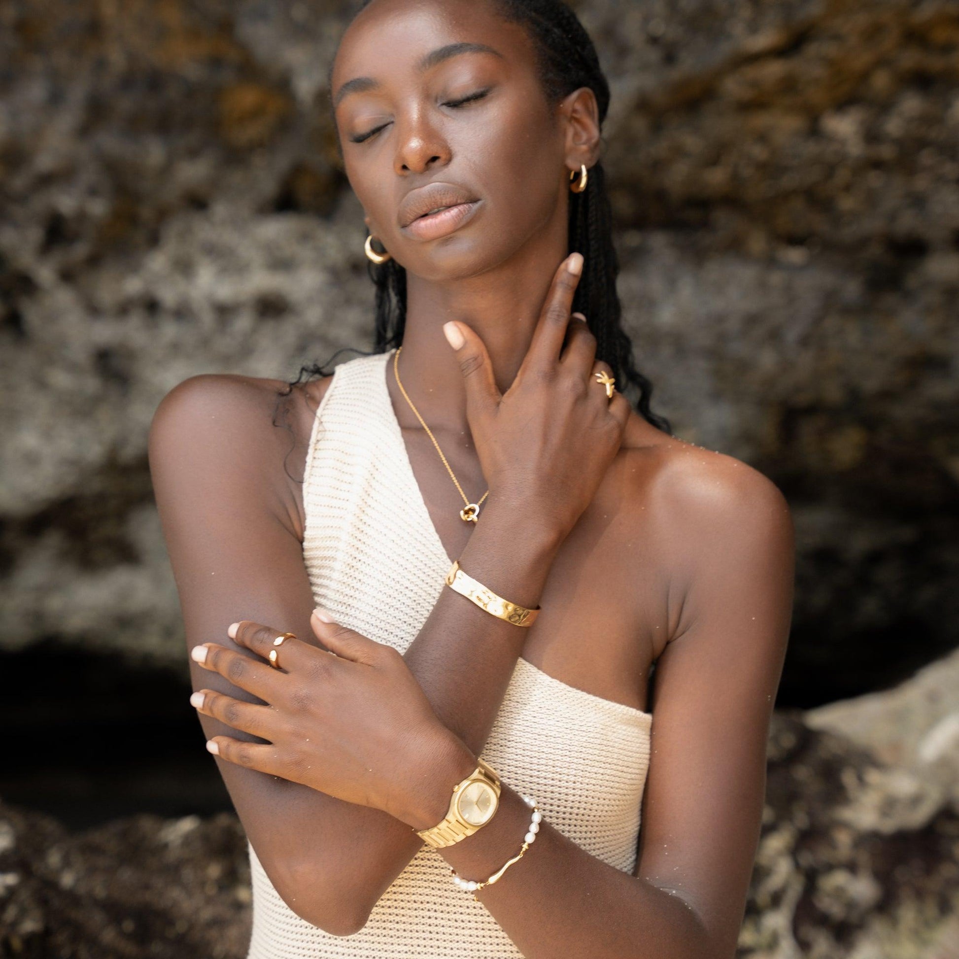 Vores smykker er designet til at følge med din aktive livsstil. Vandtæt, saltvandsresistent og svedtæt, hver enkelt del bevarer sin glans, uanset hvor din dag tager dig hen – fra stranden til fitnesscentret og videre.