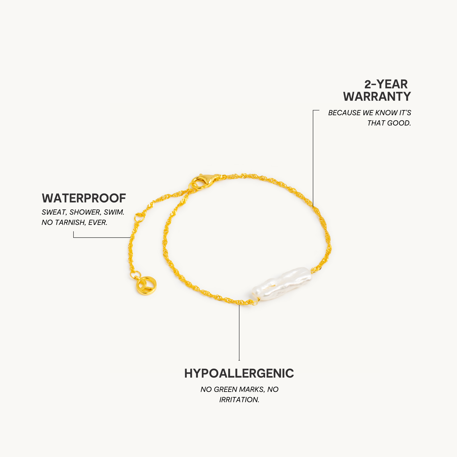 Vores smykker er designet til at følge med din aktive livsstil. Vandtæt, saltvandsresistent og svedtæt, hver enkelt del bevarer sin glans, uanset hvor din dag tager dig hen – fra stranden til fitnesscentret og videre.