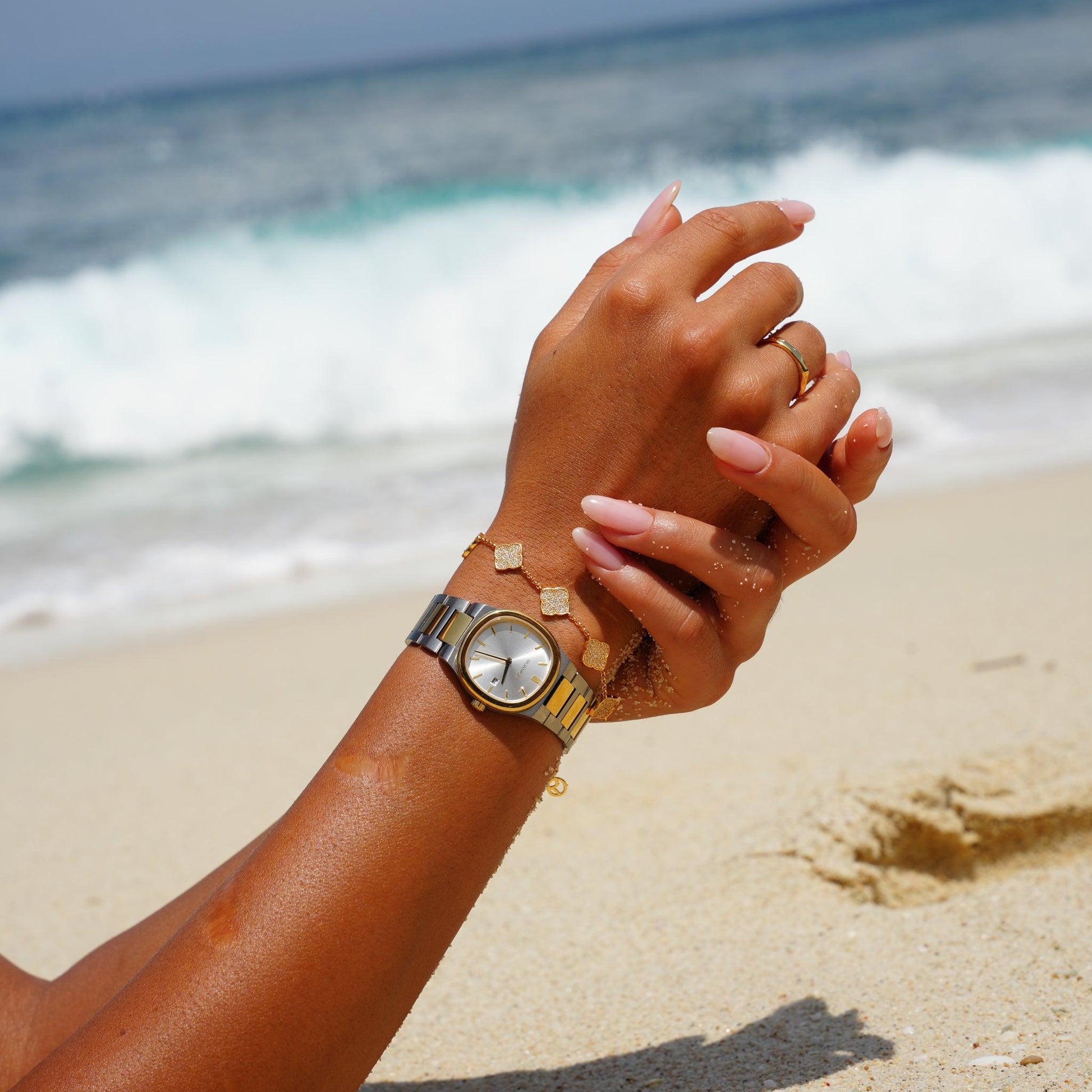 Vores smykker er designet til at følge med din aktive livsstil. Vandtæt, saltvandsresistent og svedtæt, hver enkelt del bevarer sin glans, uanset hvor din dag tager dig hen – fra stranden til fitnesscentret og videre.