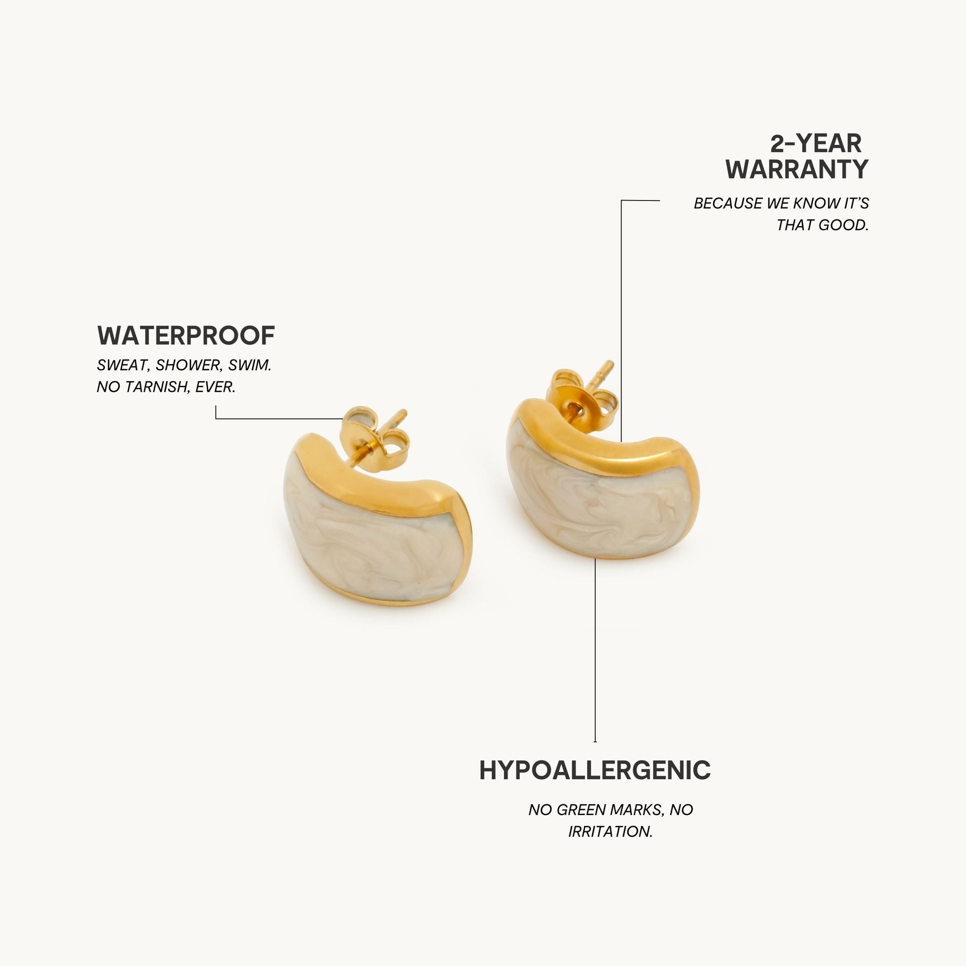 Vores smykker er fremstillet af rustfrit stål af høj kvalitet og derefter belagt med 18 karat guld via Physical Vapor Deposition (PVD).