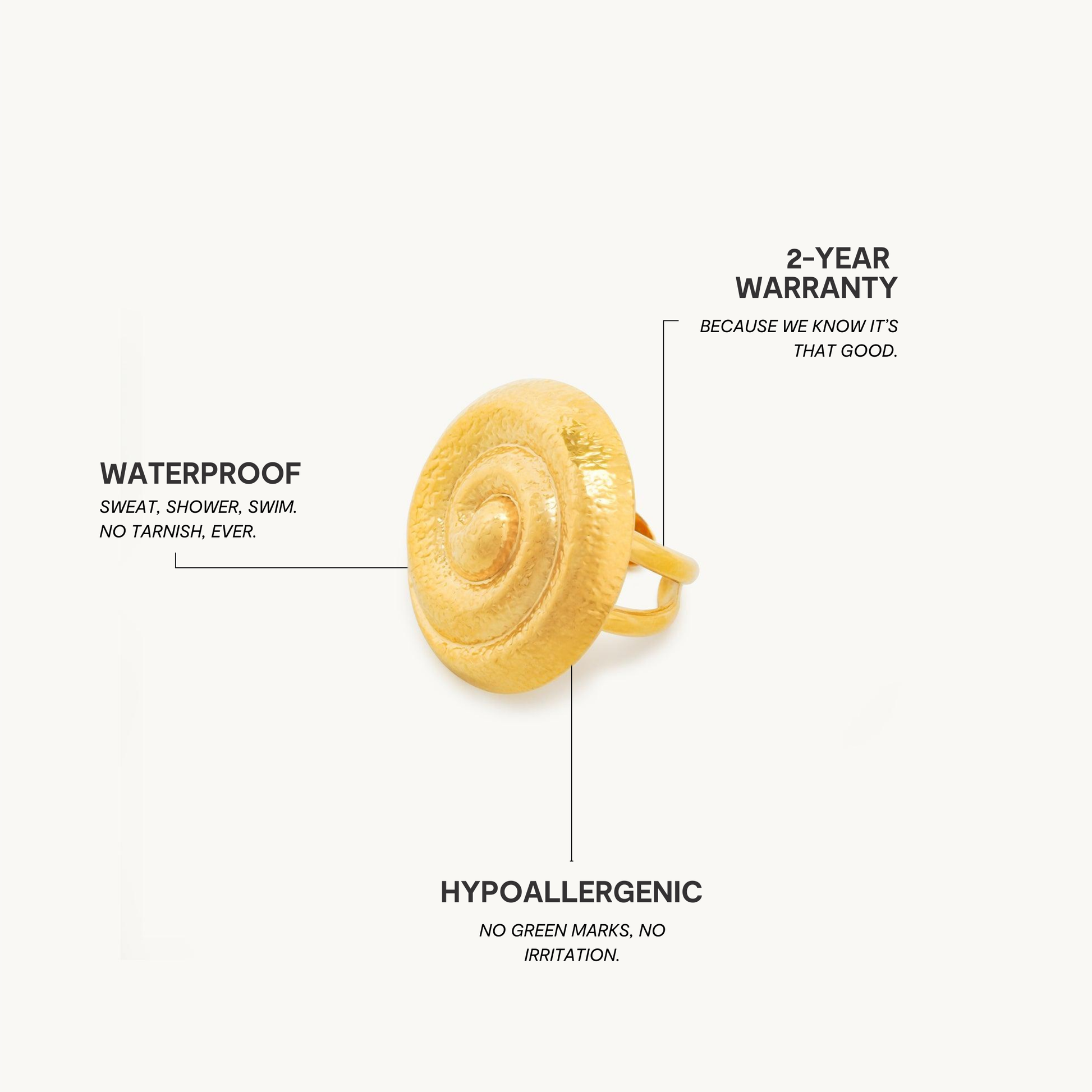 Vores smykker er fremstillet af rustfrit stål af høj kvalitet og derefter belagt med 18 karat guld via Physical Vapor Deposition (PVD).
