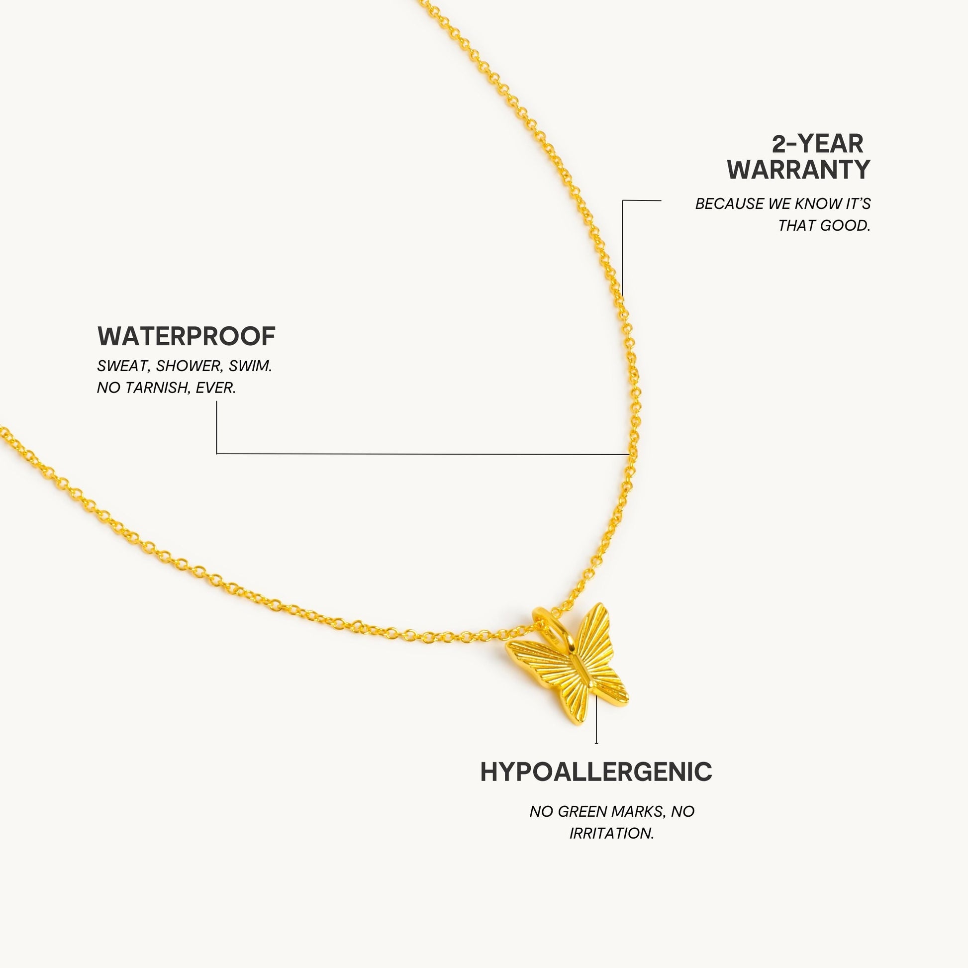 Vores smykker er fremstillet af rustfrit stål af høj kvalitet og derefter belagt med 18 karat guld via Physical Vapor Deposition (PVD).