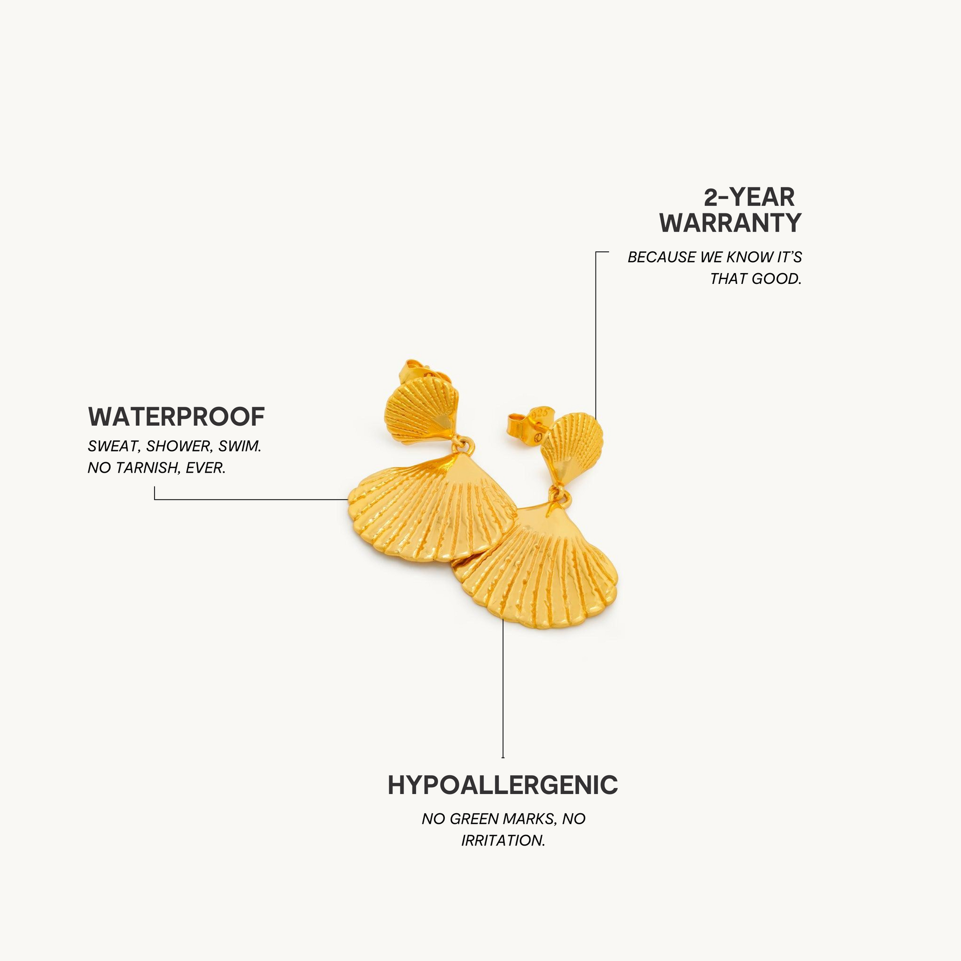 Vores smykker er fremstillet af rustfrit stål af høj kvalitet og derefter belagt med 18 karat guld via Physical Vapor Deposition (PVD).