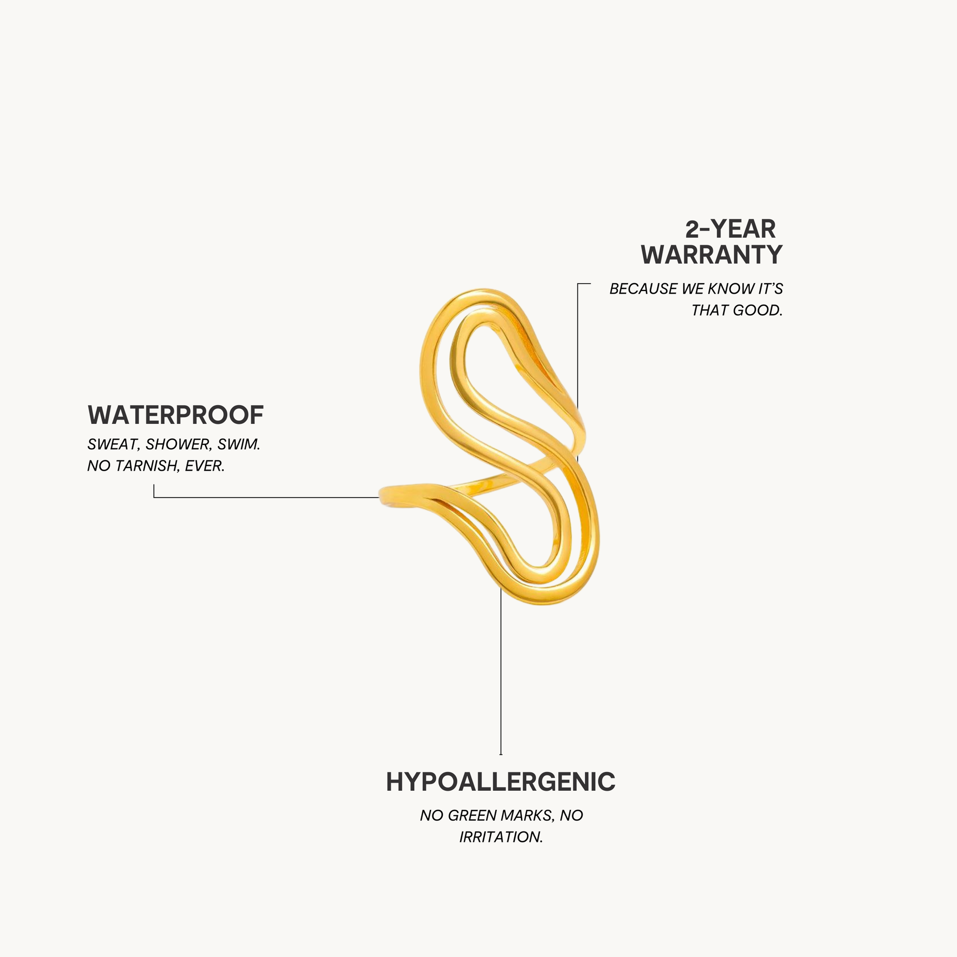 Vores smykker er fremstillet af rustfrit stål af høj kvalitet og derefter belagt med 18 karat guld via Physical Vapor Deposition (PVD).